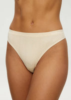High-waisted thong with a clean, minimalist style, featuring a delicate cable pattern and a seamless finish. Lightweight, stretchy, and discreet, it offers a sophisticated look with a festive touch.